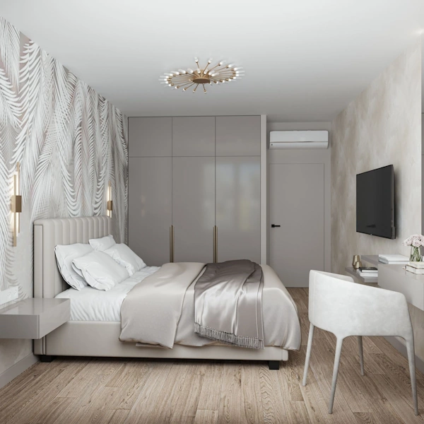 Спальная комната: создать уют и разместить большую кровать, спроектировать зону для туалетного столика.